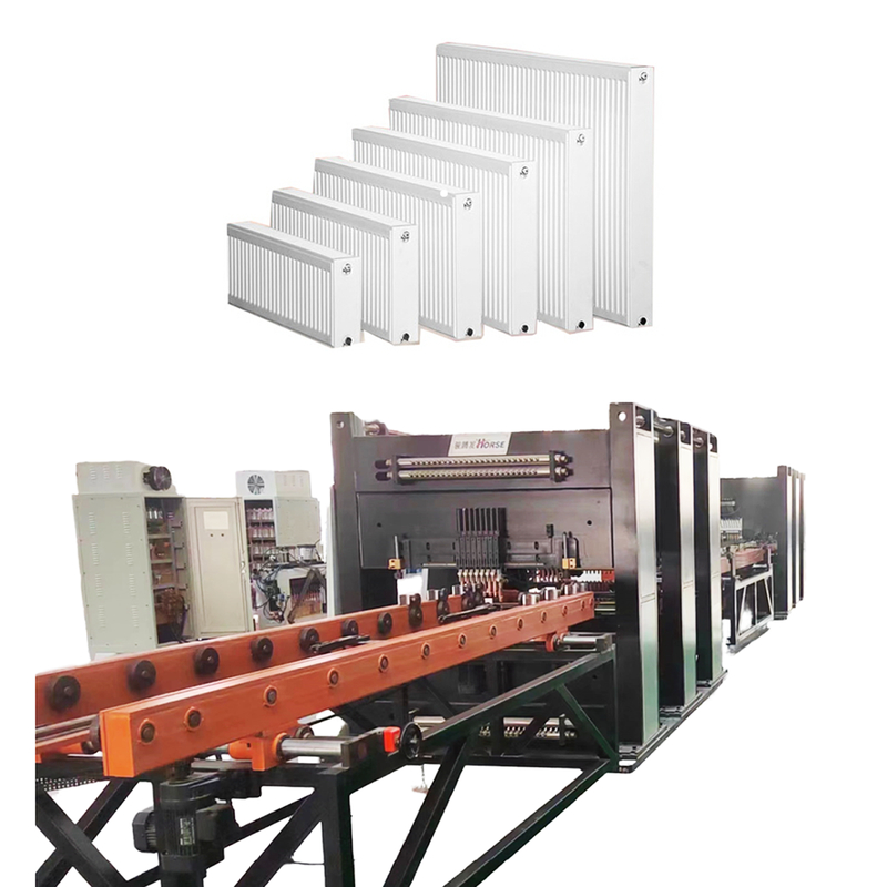 |  | Panel portalı çok noktalı kaynak makinesi Saldırma için 3 portalı çok noktalı kaynak makinesi. Her ünitede 18 adet silindir kaynak eklemleri vardır. Bir seferde bir sıra lehimli eklemleri kaynaklamak için AC kaynak kaynağı. Yüksek hızlı servo bağlantı stepper, su kanalı plakalarını beslemek için sapıtı ileriye doğru besler. |